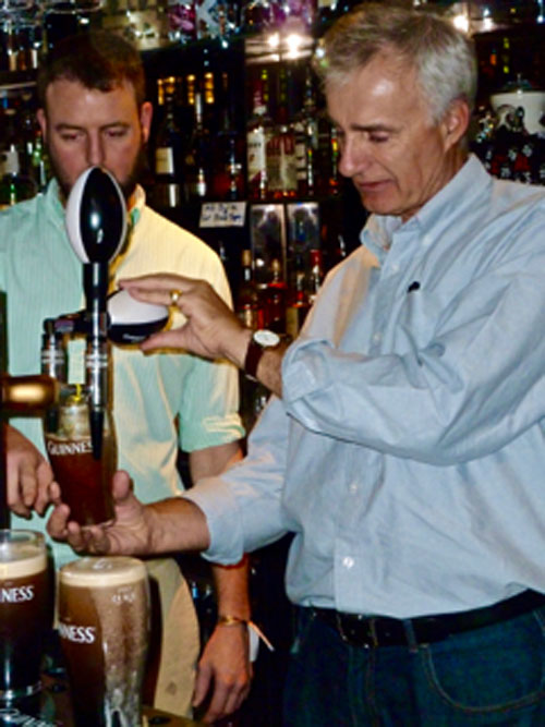 The ICS Chairman, Capt. Richard Brooke-Hart pours the perfect pint of the “Black Stuff” for the Controlling Council member’s refreshment.