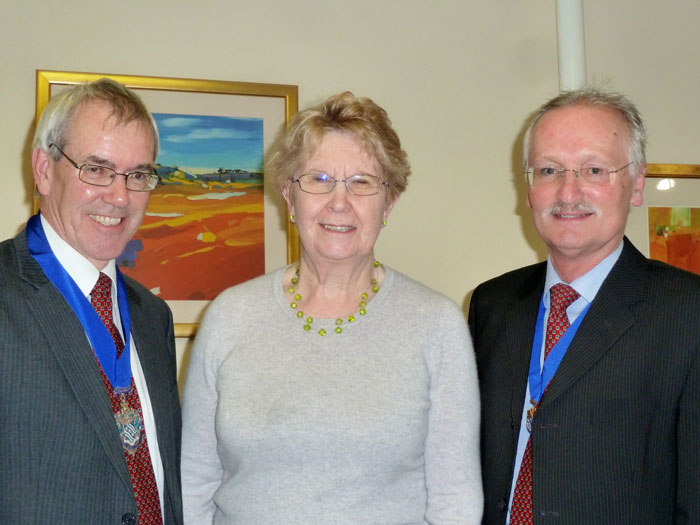 The Outgoing Branch Chairman Gabriel Jug & the New Chairman, Jonathan Challacombe with Barbara Fletcher on her 2nd retirement at the recent AGM.